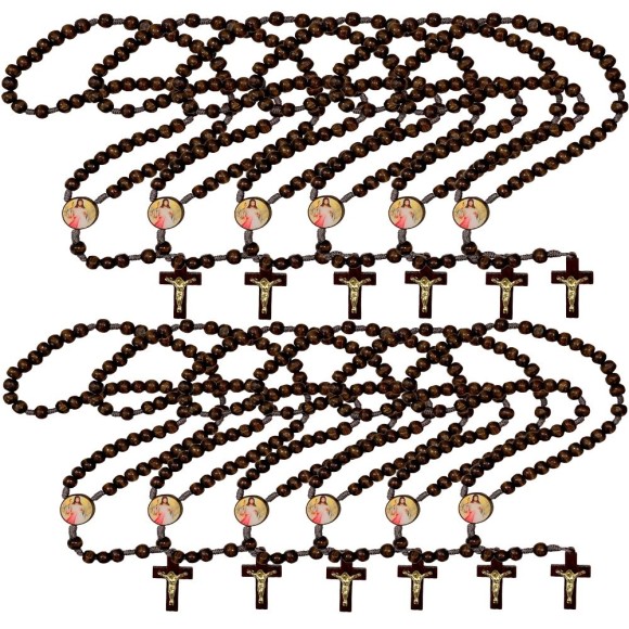 TE940510P12 - Terço Jesus Misericordioso Madeira c/ 12un. - 37cm