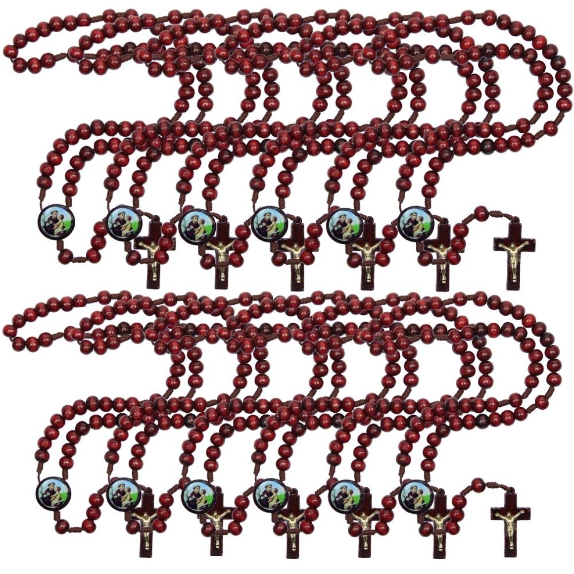 TE940551P12 - Terço Santo Antônio Madeira c/ 12un. - 37cm