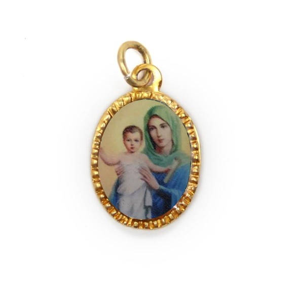 - MD103136P10 - Medalha de Alumínio Oval Dourada c/ 10un N. Sra. Rainha dos Apóstolos - 2x1,3cm
