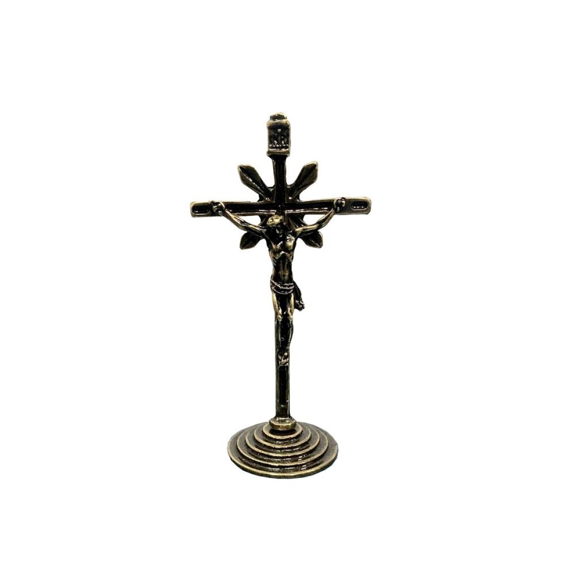 *Crucifixo de Mesa Raiado Metal Ouro Velho - 9x4,5cm (619).