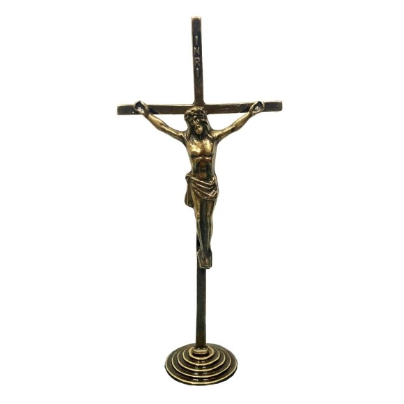 *Crucifixo de Mesa Metal Ouro Velho - 14x6,5cm (621)