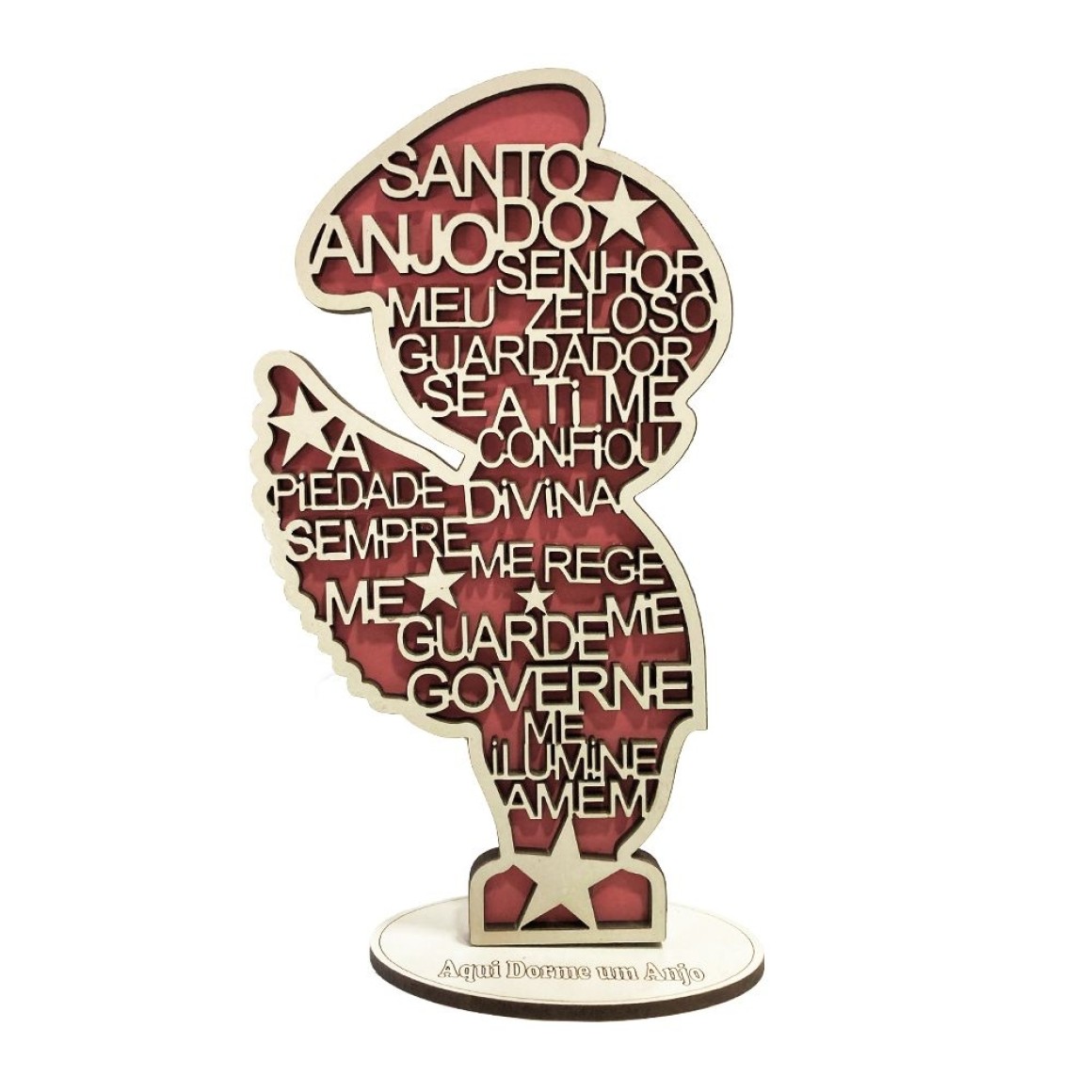 *Pedestal Santo Anjo Rosa MDF - 17x11cm.