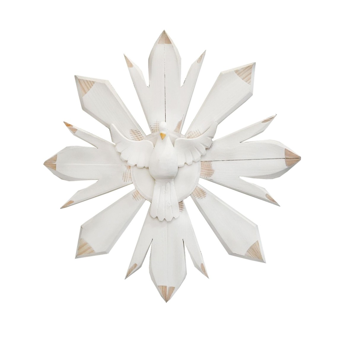 *Divino Espírito Santo Resplendor de Parede Madeira Branca - 43x43cm.