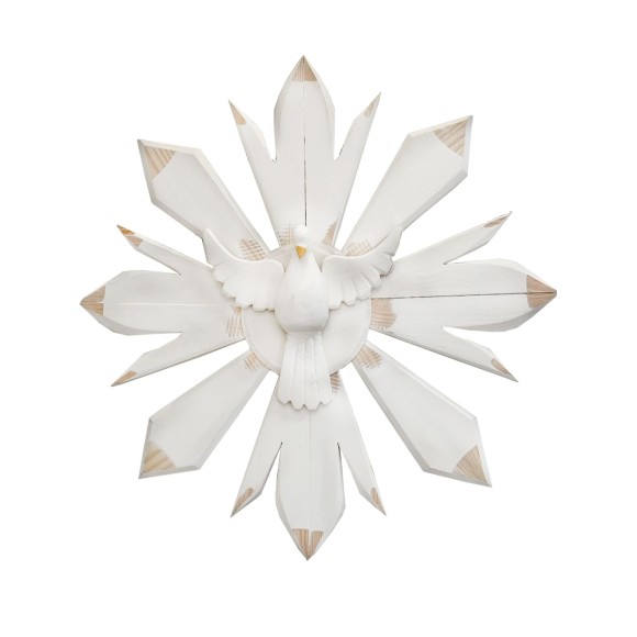 2. DF1983050 - Divino Espírito Santo Resplendor de Parede Madeira Branca - 43x43cm