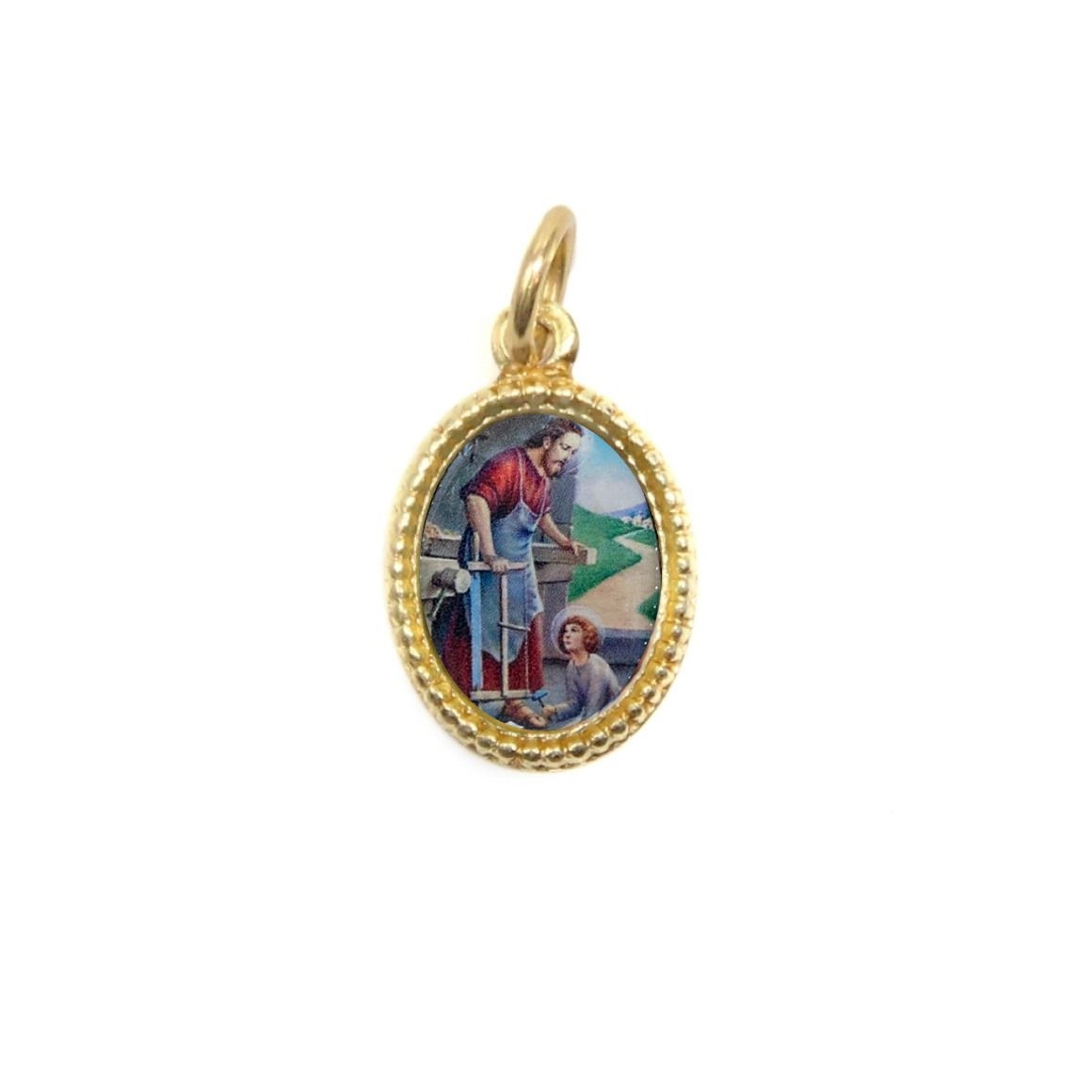 - MD102270P20 - Medalha de Alumínio Oval Pequena Dourada c/ 20un. São José Operário - 1,5x1cm