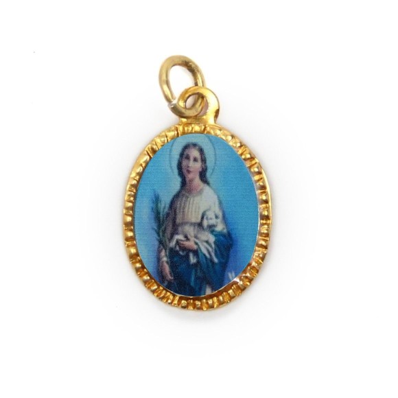 *Medalha de Alumínio Oval Dourada c/ 10un Santa Inês - 2x1,3cm.