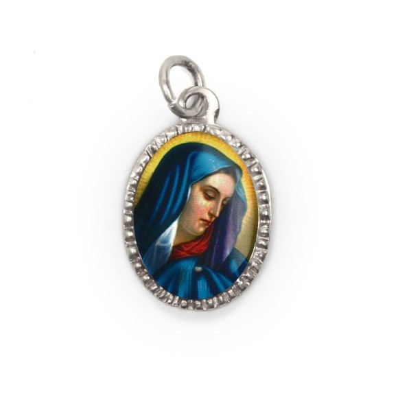 MD103630P10 - Medalha de Alumínio Oval Prata c/ 10un. N. Sra. das Dores - 2x1,3cm