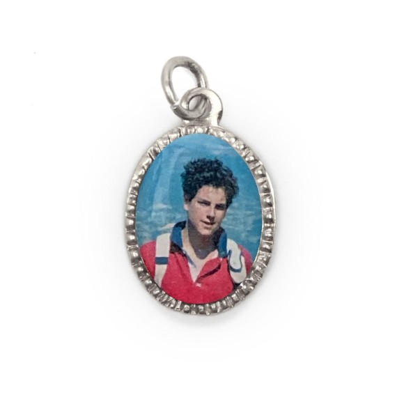 MD103850P10 - Medalha de Alumínio Oval Grande Prata c/ 10un. São Carlo Acutis - 2x1,3cm