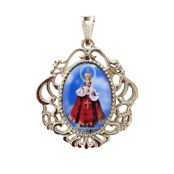 MD129520 - Medalha Menino Jesus de Praga Camafeu Níquel - 5,5x4,2cm