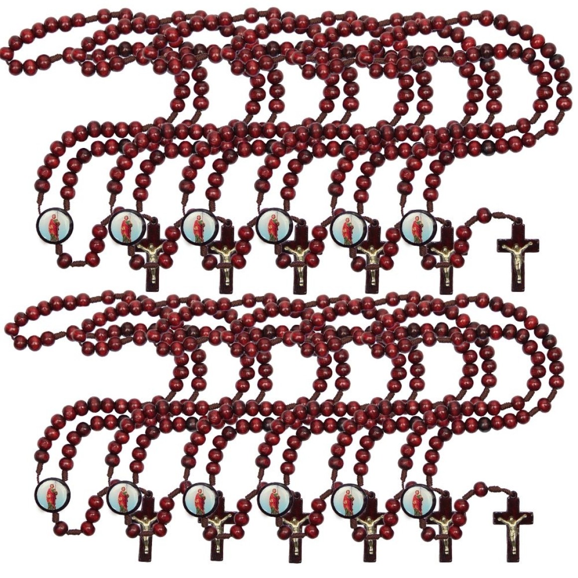 TE940451P12 - Terço São Judas Tadeu Madeira c/ 12un. - 37cm