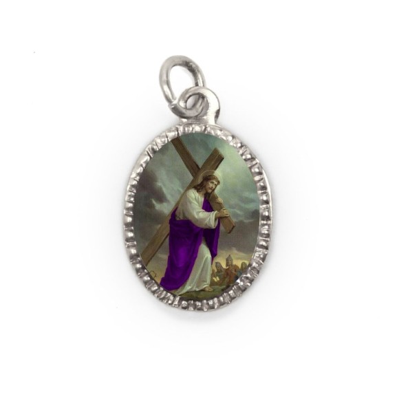 MD103860P10 - Medalha de Alumínio Oval Grande Prata c/ 10un. Bom Jesus dos Passos - 2X1,3cm