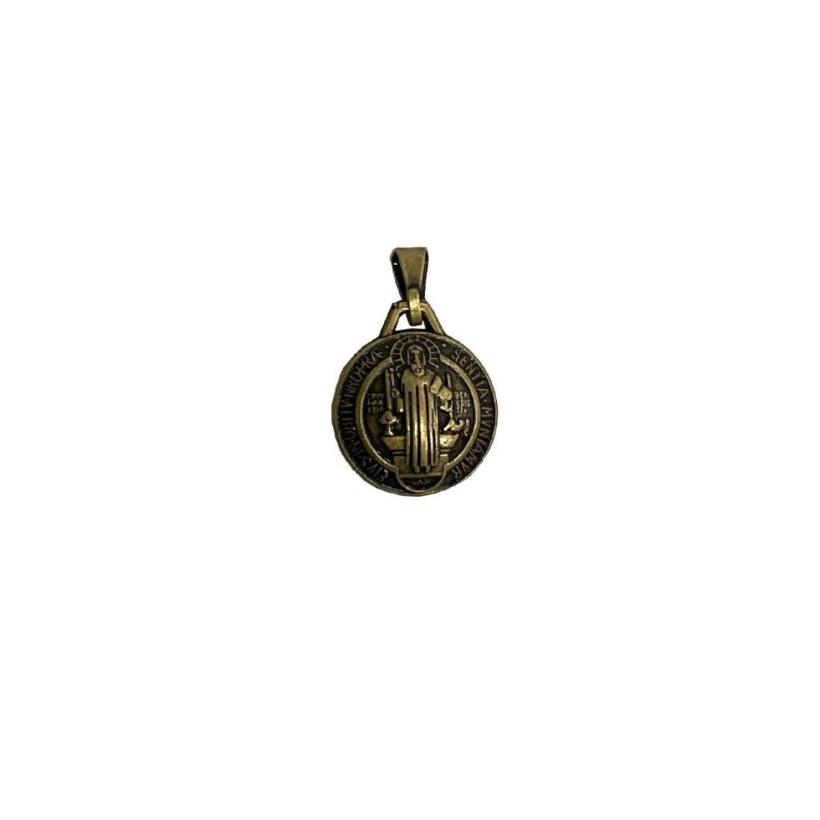 *Na frente da medalha são apresentados uma cruz e entre seus braços estão gravadas as letras C S P B, cujo significado é, do latim: Cruz Sancti Patris Benedicti – "Cruz do Santo Pai Bento".