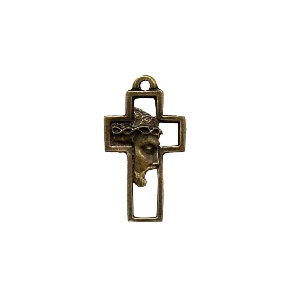 *Cruz Metal Ouro Velho Face de Cristo - 4,6x2,5cm.
