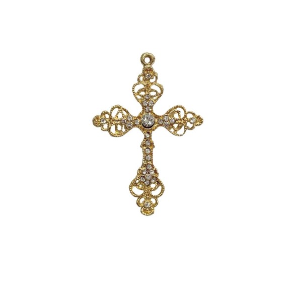 CZ1470060 - Cruz Metal Dourada c/ Strass - 7,5x5cm