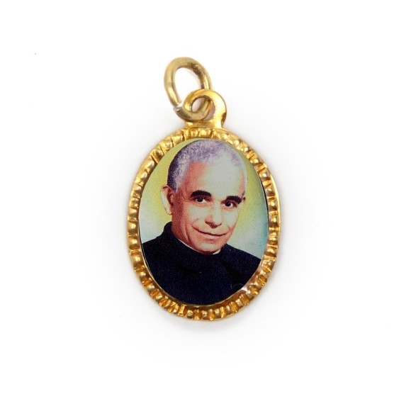 *Medalha de Alumínio Oval Grande Dourada c/ 10un. São Luís Orione - 2x1,3cm.