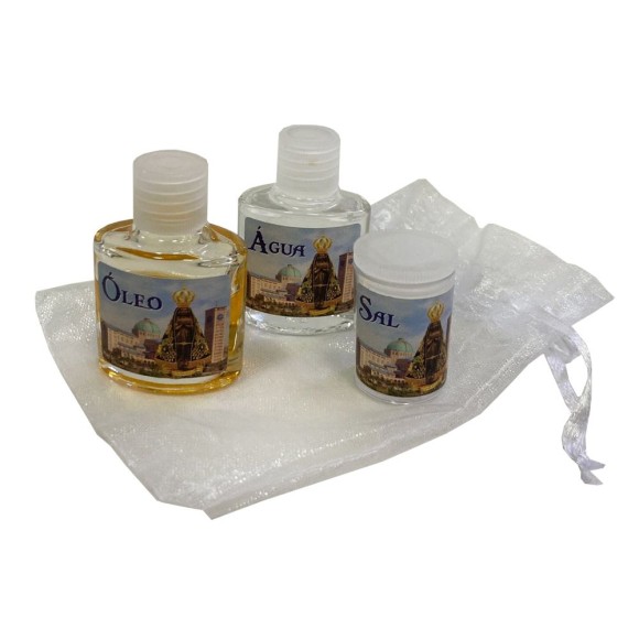 KT750501 - Kit N. Sra. Aparecida - Água Benta + Sal Grosso + Óleo
