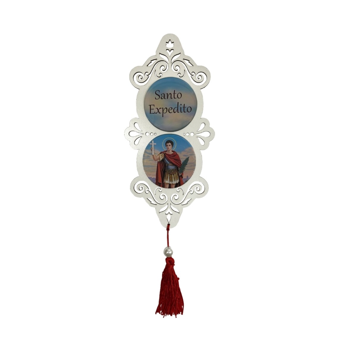 AO4102102 - Adorno Santo Expedito MDF Branco Resinado - 32x10,2cm
