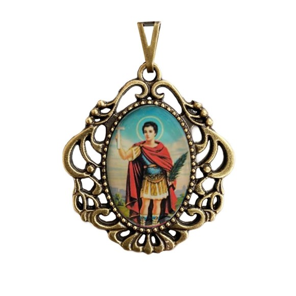 MD129647 - Medalha Santo Expedito Camafeu Ouro Velho - 4,5x4cm