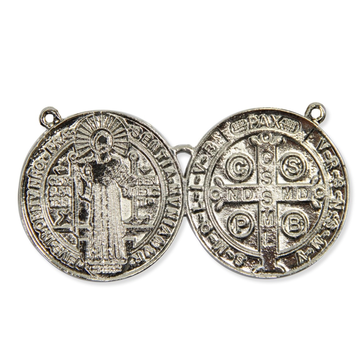*Na frente da medalha são apresentados uma cruz e entre seus braços estão gravadas as letras C S P B, cujo significado é, do latim: Cruz Sancti Patris Benedicti – "Cruz do Santo Pai Bento".