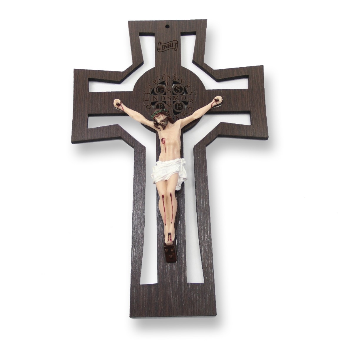 *Crucifixo de Parede São Bento Madeira - 28x18cm.