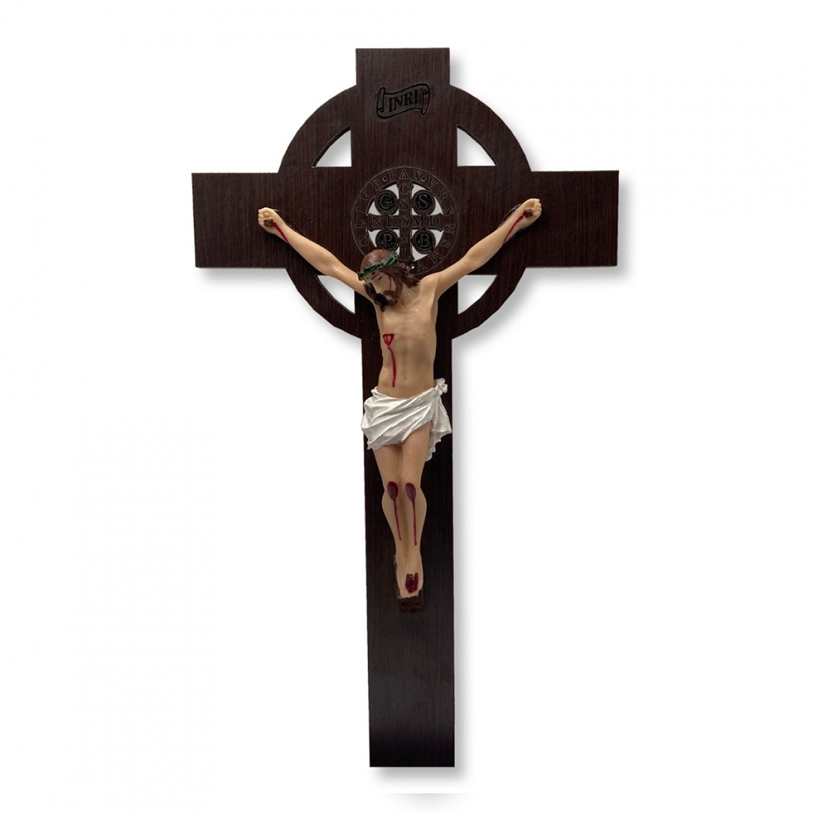 *Crucifixo de Parde São Bento Madeira - 28x16cm.