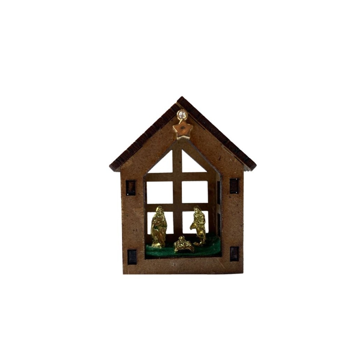2. IM32113 - Presépio Dourado c/ Casinha de MDF - 6x4cm