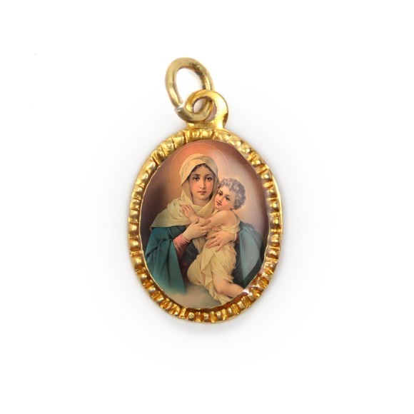 *Medalha de Alumínio Oval Dourada c/ 10un. Mãe Rainha - 2X1,3cm.