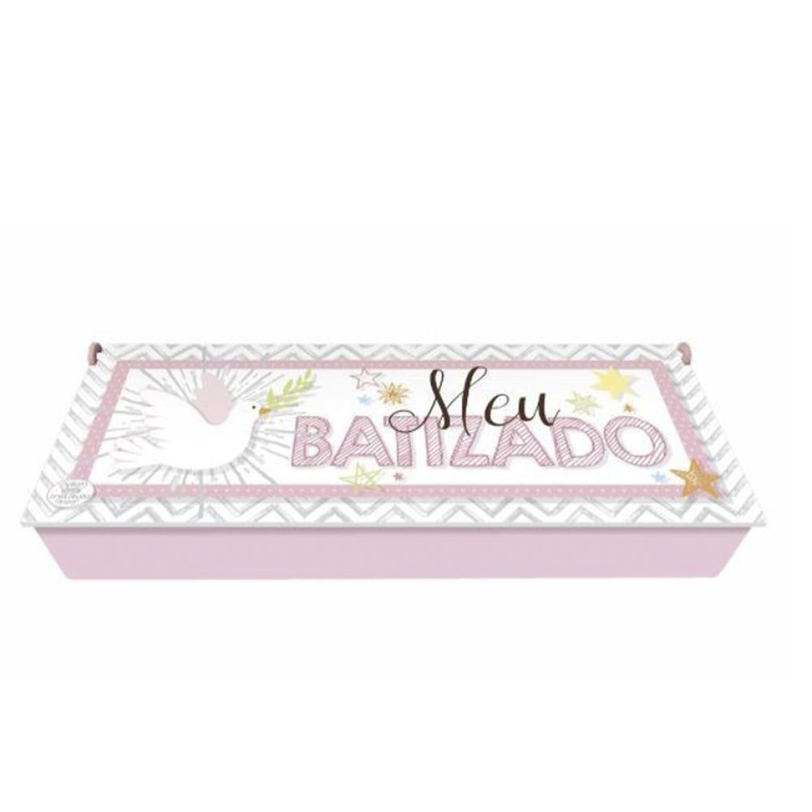 *Caixa Porta Vela Meu Batizado Rosa MDF - 28,5x10,5cm.