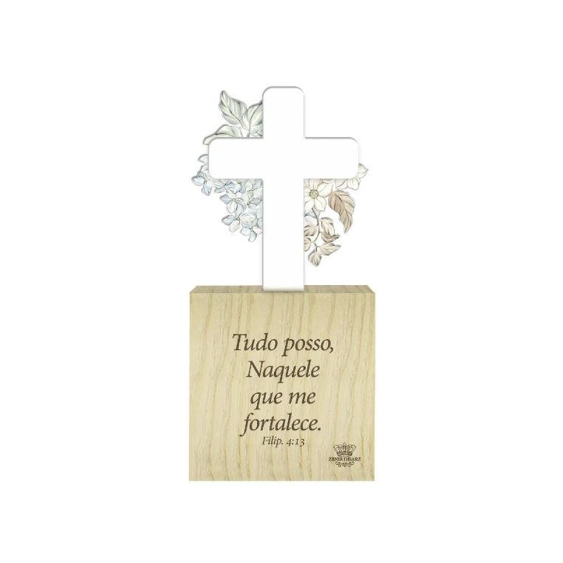 *Adorno de Mesa " Tudo Posso Naquele que me Fortalece" - 15,5x8cm.