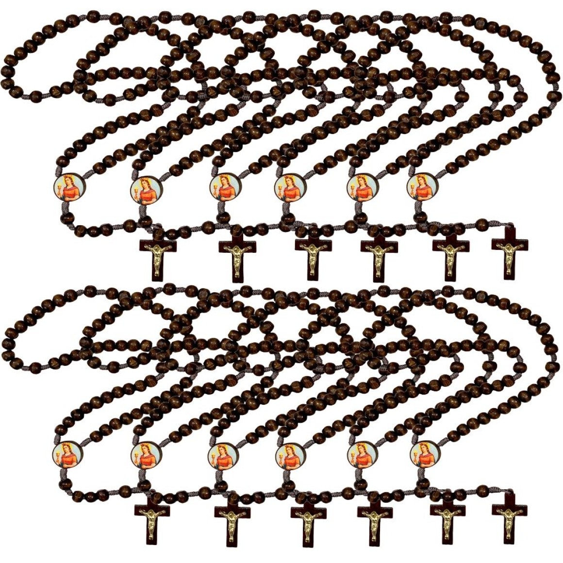 TE940268P12 - Terço Santa Bárbara Madeira c/ 12un. - 37cm