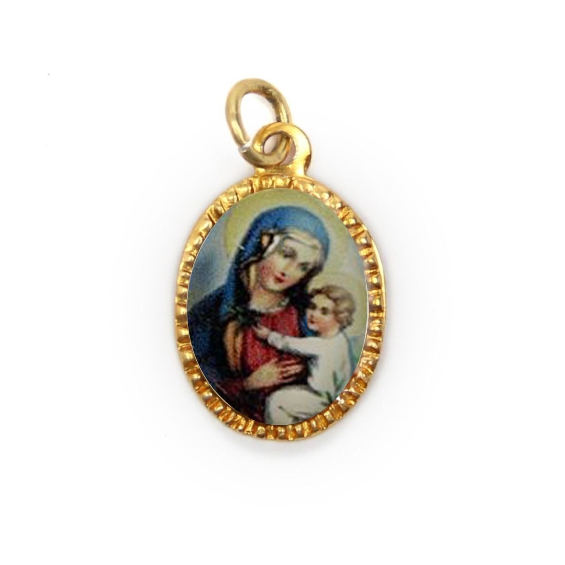 *Medalha de Alumínio Oval Dourada c/ 10un N. Sra. Da Paz - 2x1,3cm.