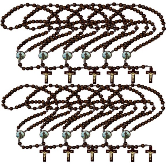 TE940425P12 - Terço São Francisco de Assis Madeira c/ 12un. - 37cm