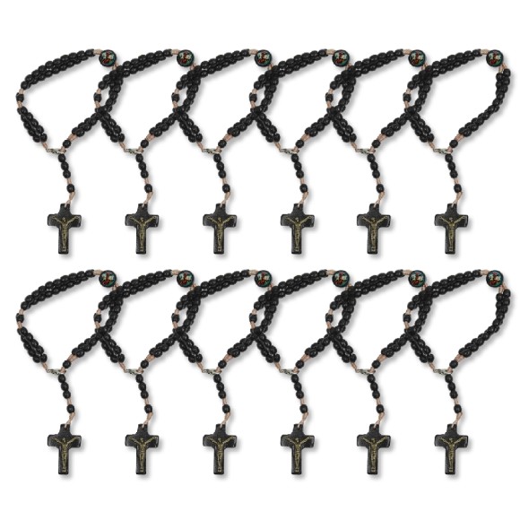 PU1543550P12 - Pulseira Terço São Jorge Madeira c/ 12un. - 22x1,8cm