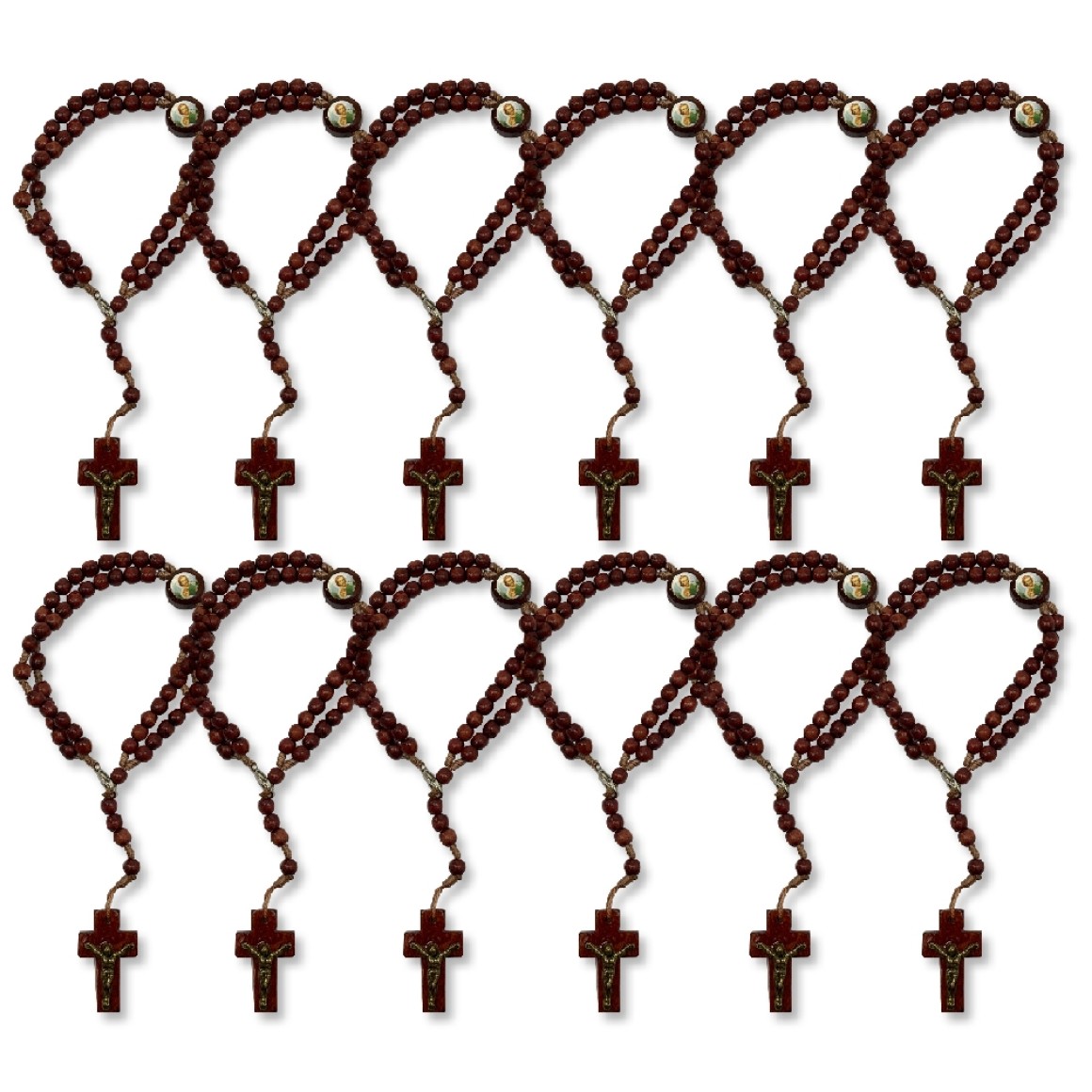 2. PU1541570P12 - Pulseira Terço São José Madeira c/ 12un. - 22x1,8cm