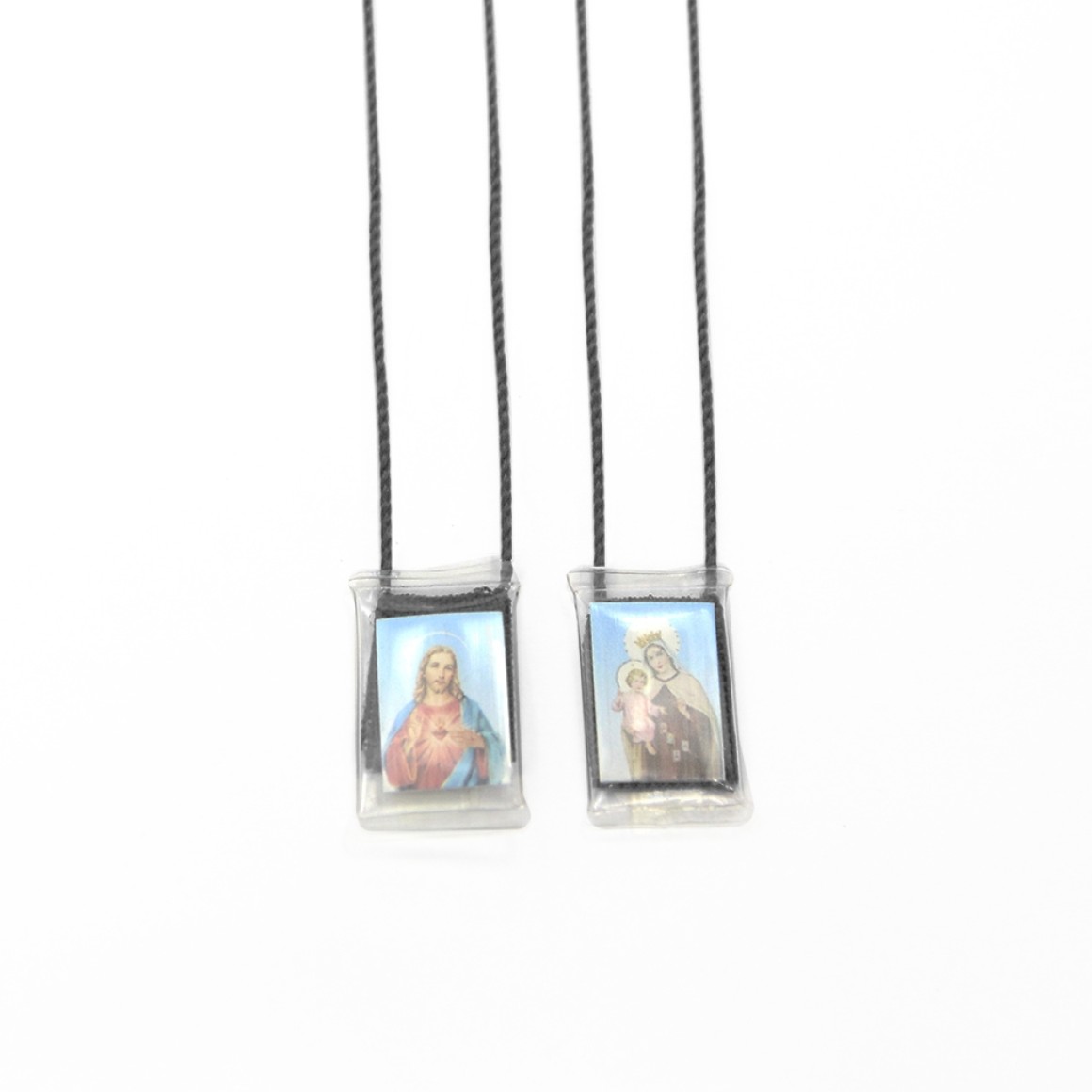 *Escapulário N. Sra. Do Carmo e Sagrado Coração de Jesus Plástico c/ Tecido.