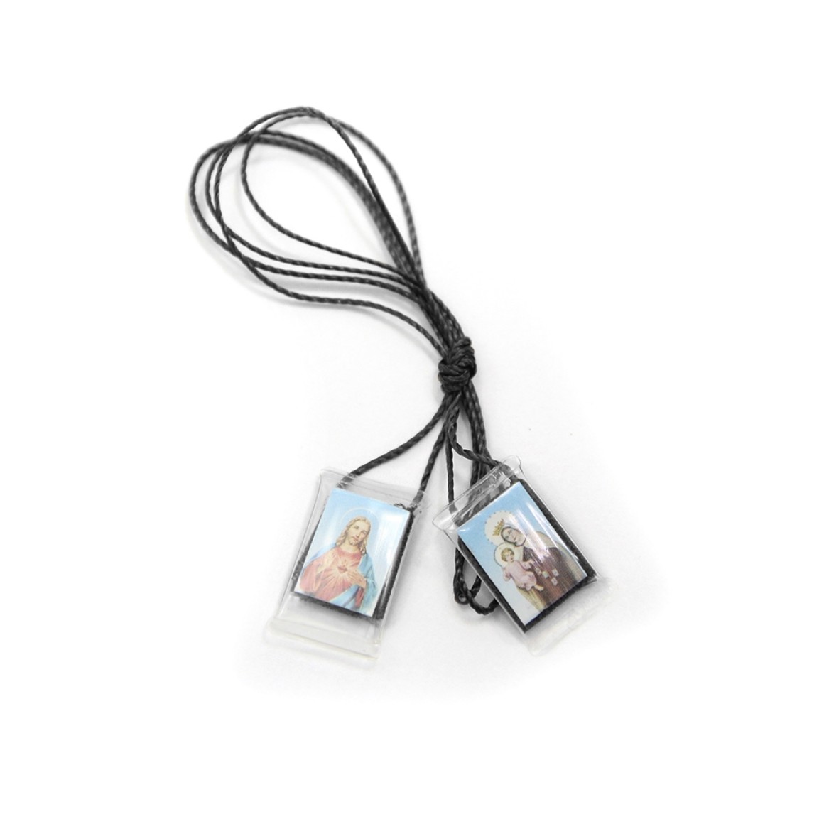 *Escapulário N. Sra. Do Carmo e Sagrado Coração de Jesus Plástico c/ Tecido.