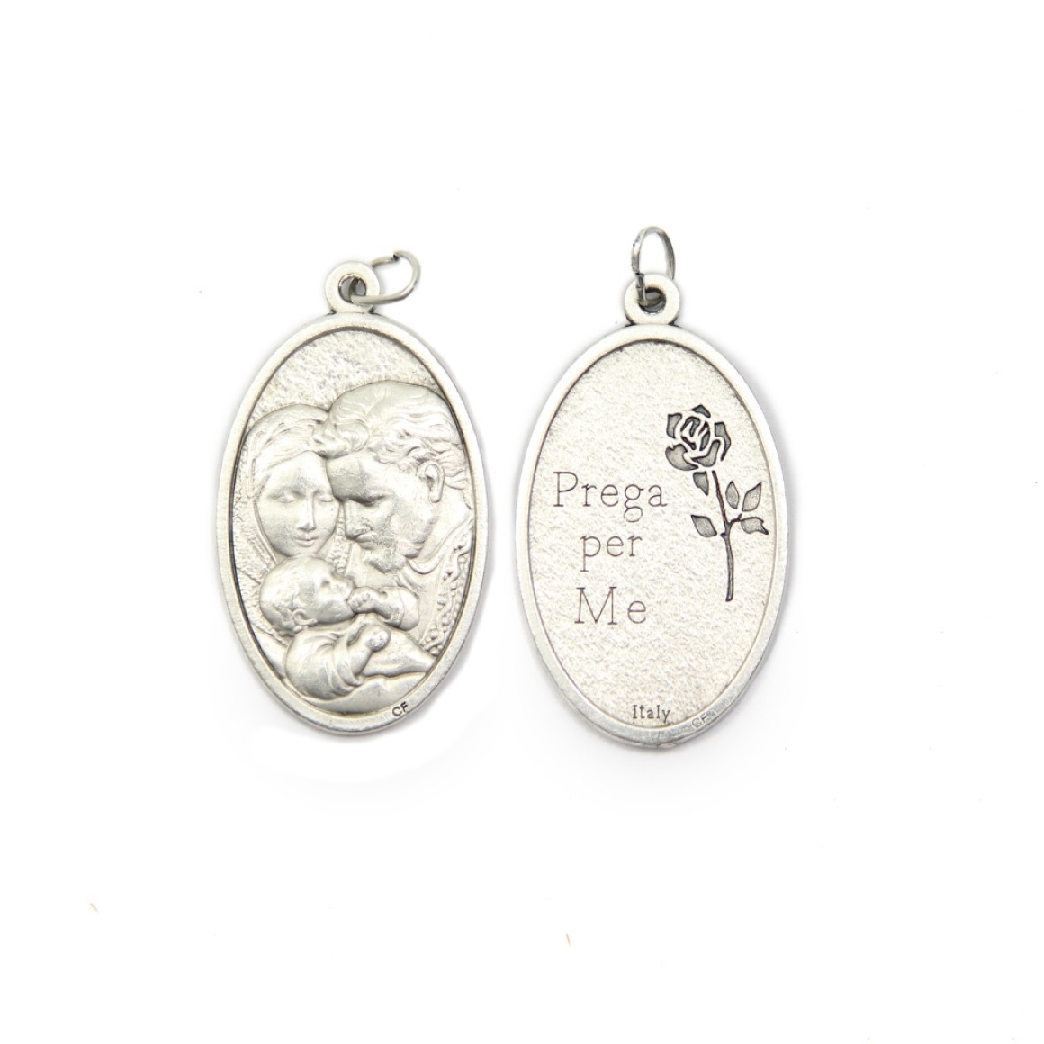 MD1190201 - Medalha Sagrada Família Italiana Oval Prateada - 4,5x2,6cm