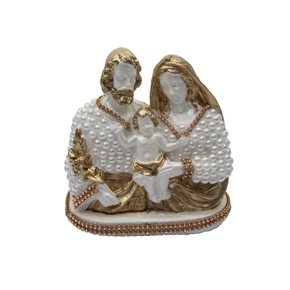 *Imagem Sagrada Família Dourada C/ Pérola e strass - 13x12cm.