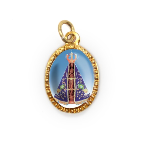*Medalha de Alumínio Oval Dourada c/ 10un. N. Sra. Aparecida - 2X1,3cm.