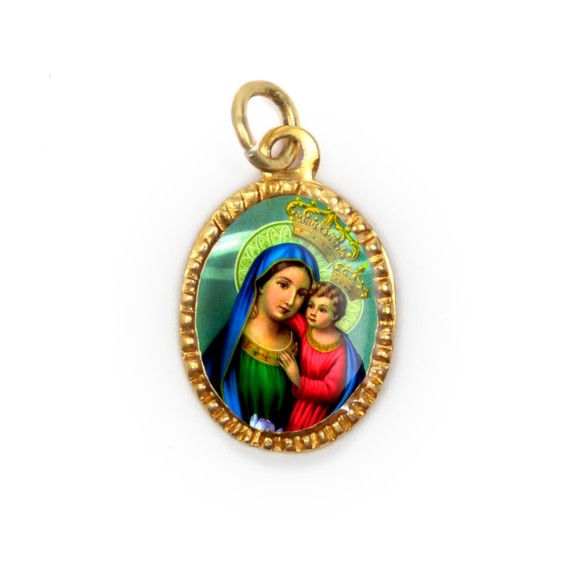 *Medalha de Alumínio Oval Dourada c/ 10un. N. Sra. Do Bom Conselho - 2X1,3cm.