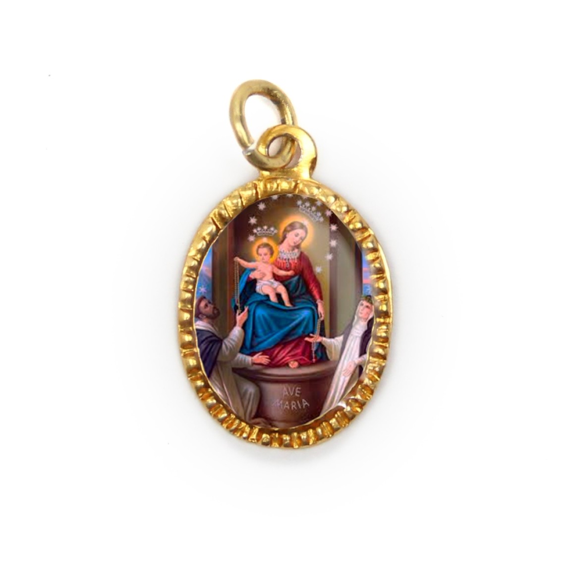 2. MD103062P10 - Medalha de Alumínio Oval Dourada c/ 10un. N. Sra. Do Rosário - 2X1,3cm