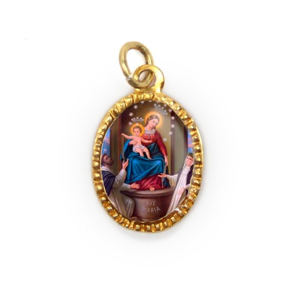 *Medalha de Alumínio Oval Dourada c/ 10un. N. Sra. Do Rosário - 2X1,3cm.