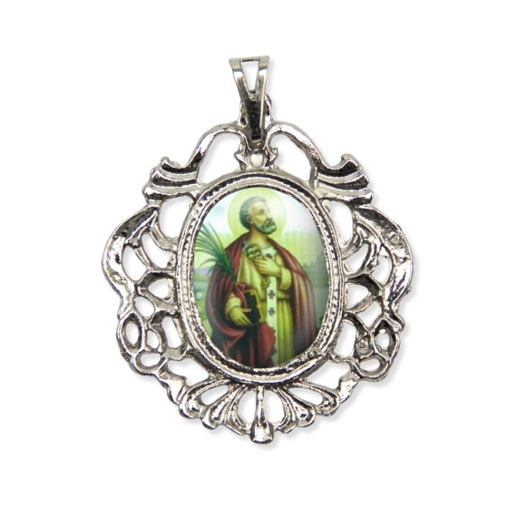 MD129444 - Medalha São Pedro Camafeu Níquel - 5x4,2cm