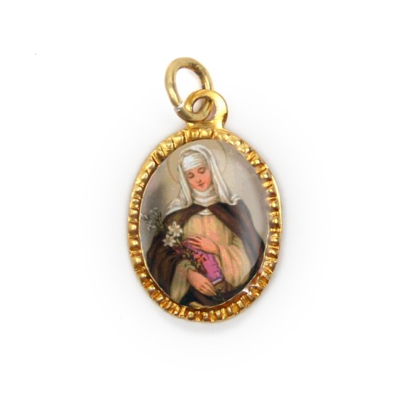 MD103082P10 - Medalha de Alumínio Oval Dourada c/ 10un. Santa Catarina de Siena - 2X1,3cm