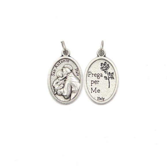 *Medalha Santo Antônio Italiana Oval Prateada c/ 2un. - 2,5x1,7cm
