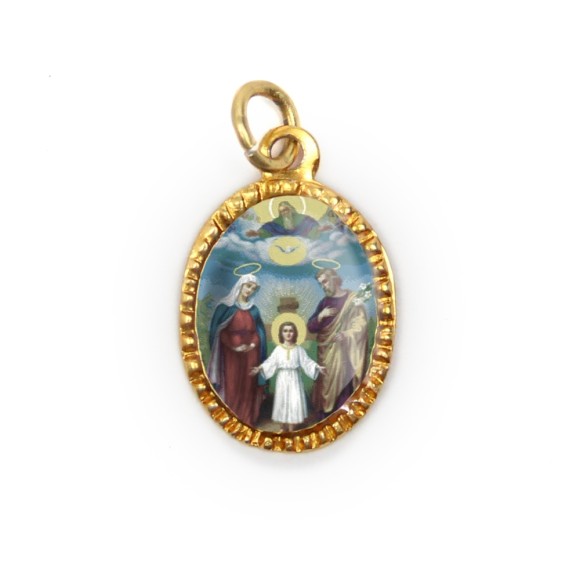 MD103412P10 - Medalha de Alumínio Oval Dourada c/ 10un. Sagrada Família - 2X1,3cm