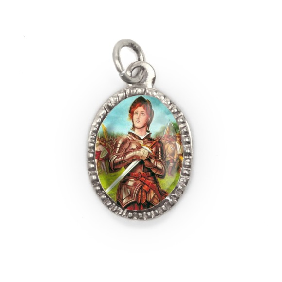 MD103622P10 - Medalha de Alumínio Oval Prata c/ 10un. Santa Joana D'Arc - 2X1,3cm