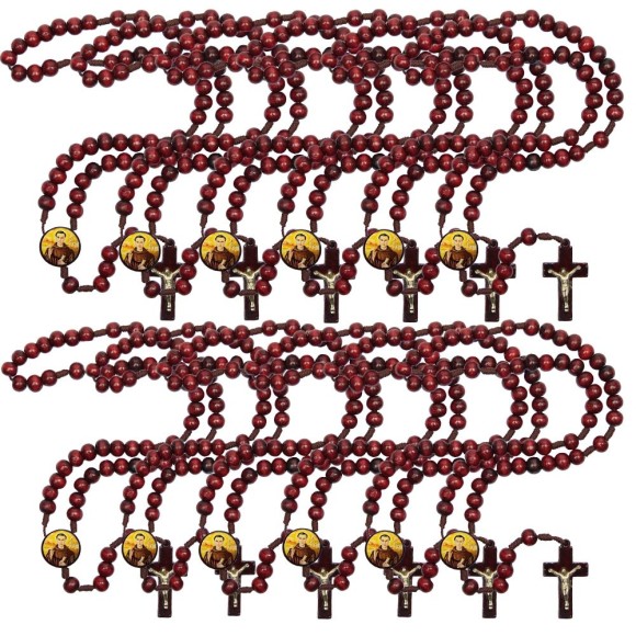 TE940458P12 - Terço São Frei Galvão Madeira c/ 12un. - 37cm