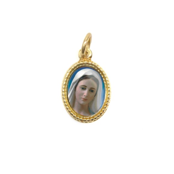 MD102020P20 - Medalha de Alumínio Oval Dourada c/ 20un. N. Sra. Rainha da Paz - 1,5x1cm