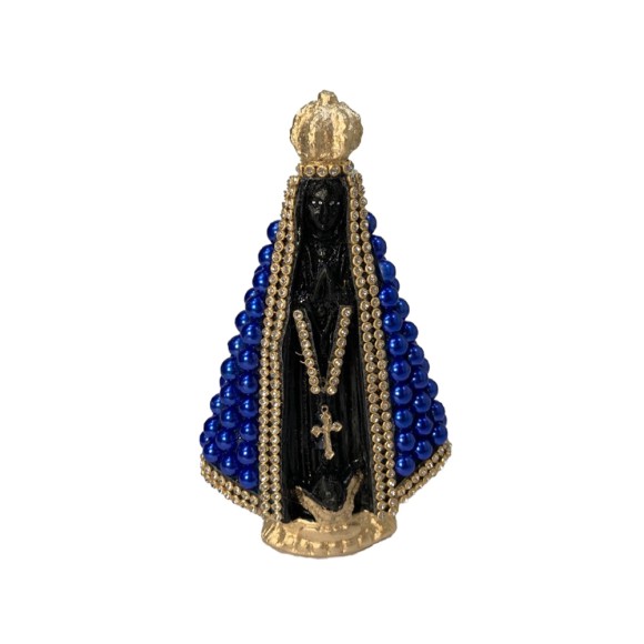 *Imagem N. Sra. Aparecida c/ Pérola Azul e Strass - 14,5x8,5cm.